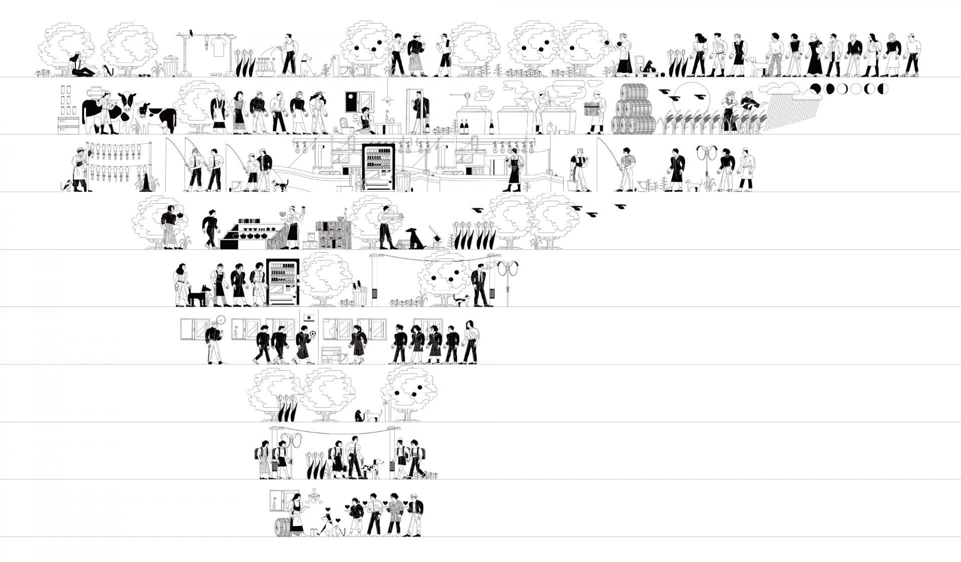 漫画のようなタッチで、グラフに人々の暮らしを「刻んだ」